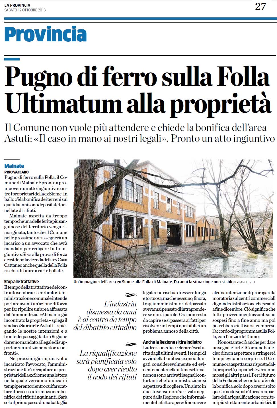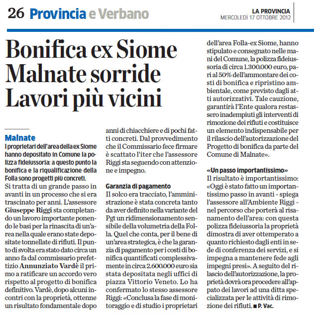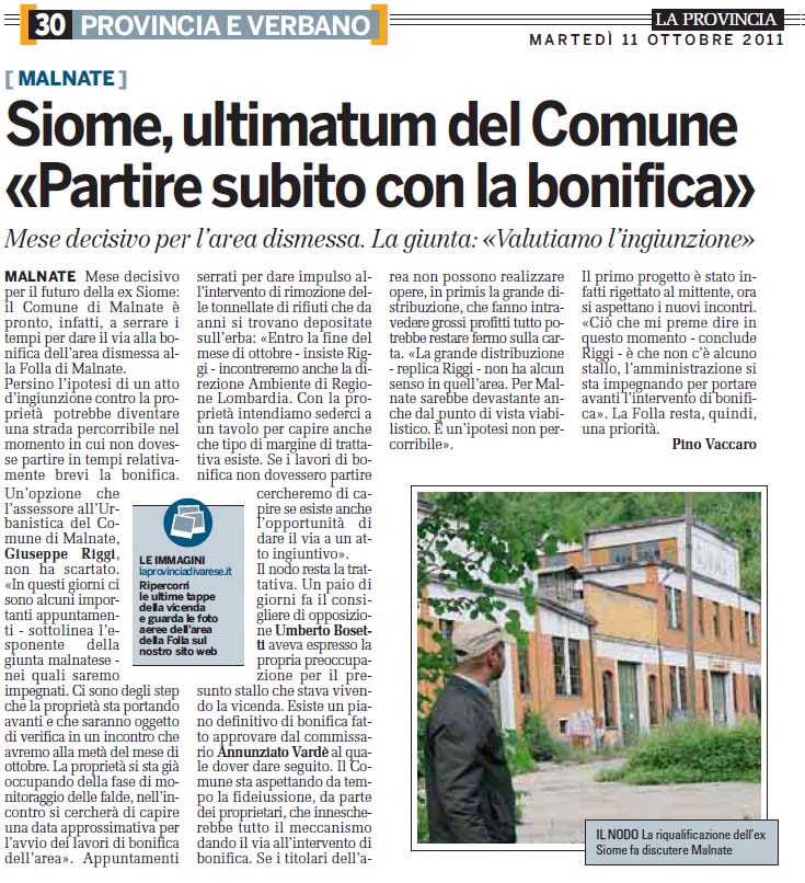 ![]() 8 settembre 2025 alla ex SIOME si prepara la bonifica |